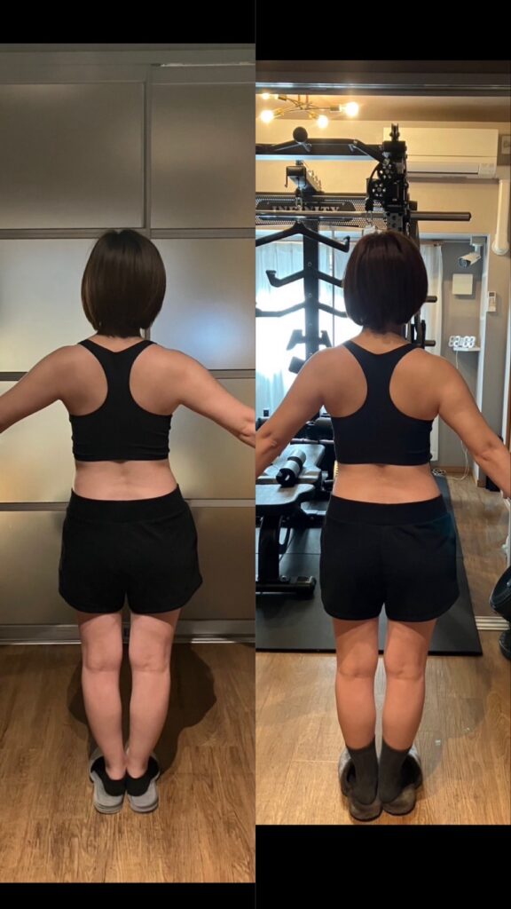 同じ悩みを持つ方へ一言メッセージをお願いします!⇒ここにきてパーソナルジムのイメージが変わりました。藤田さんご夫婦とたくさんお話しできて楽しいです。キツすぎず緩すぎず程よく追い込んでくれて毎回、私の身体の状態を説明してくれるので姿勢に悩まれている方は是非受けてみてください。